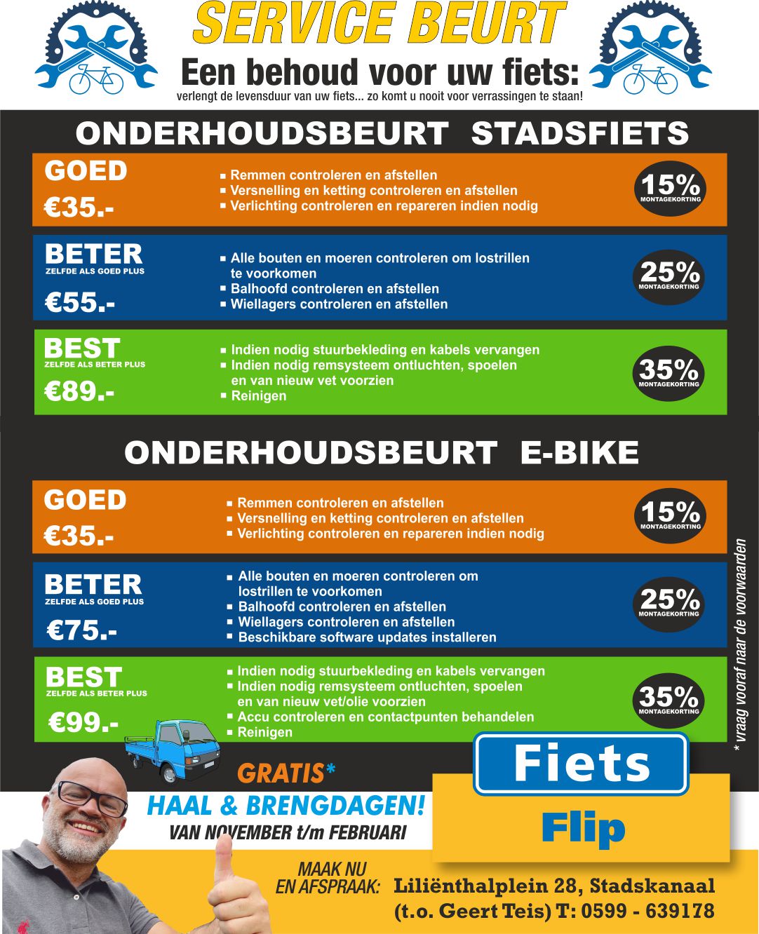 - Lekke band? ’s Ochtends gebracht is dezelfde dag nog weer ophalen!!